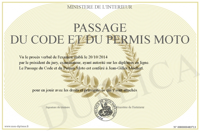 Envoyez par email votre Passage du Code et du Permis Moto personalisé