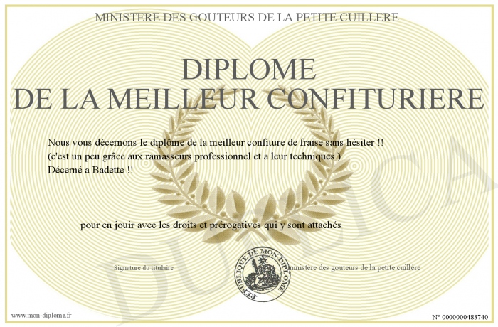 Envoyez par email votre diplôme de la meilleur confiturière personalisé