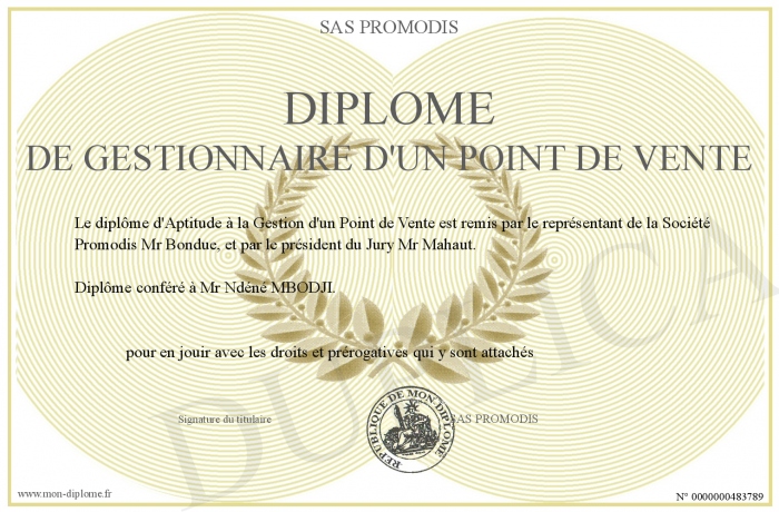 Envoyez par email votre Diplôme de gestionnaire d'un point de vente personalisé