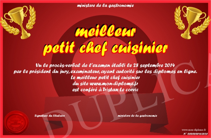 Envoyez par email votre meilleur petit chef cuisinier personalisé