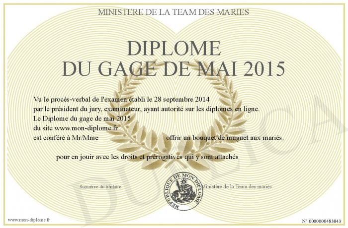 Envoyez par email votre Diplôme du gage de mai 2015 personalisé