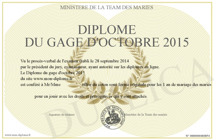 Envoyez par email votre Diplôme du gage d'octobre 2015 personalisé