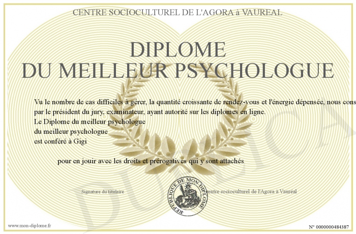 Envoyez par email votre Diplôme du meilleur psychologue personalisé
