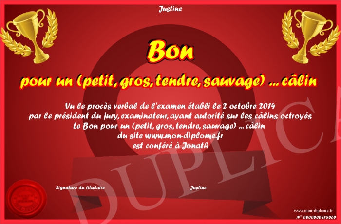 Envoyez par email votre Bon pour un (petit, gros, tendre, sauvage) ... câlin personalisé