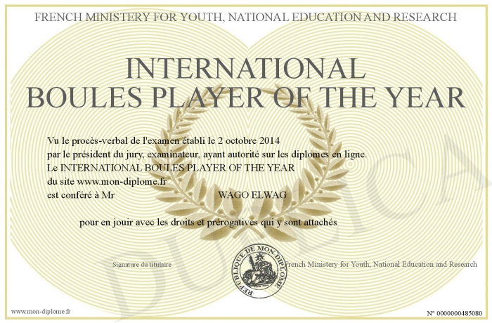 Envoyez par email votre INTERNATIONAL BOULES PLAYER OF THE YEAR personalisé