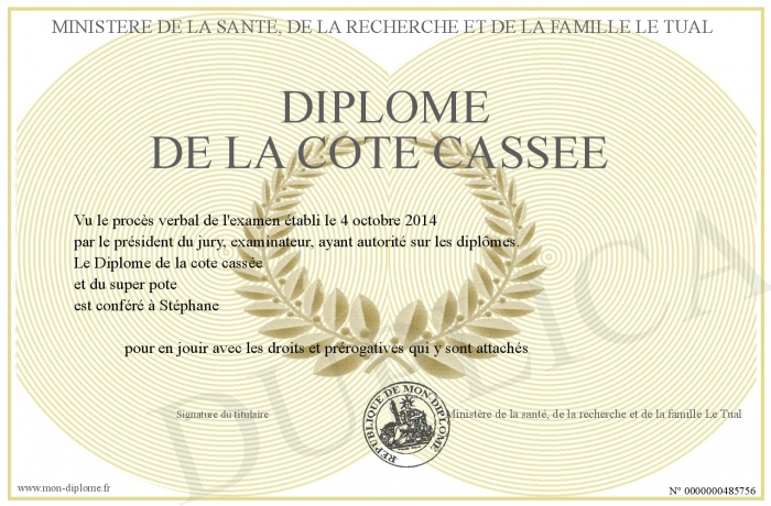 Envoyez par email votre Diplôme de la cote cassée personalisé