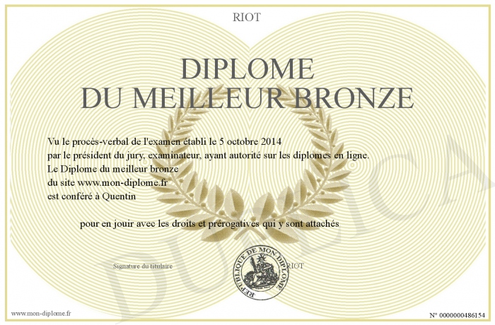 Envoyez par email votre Diplome du meilleur bronze personalisé