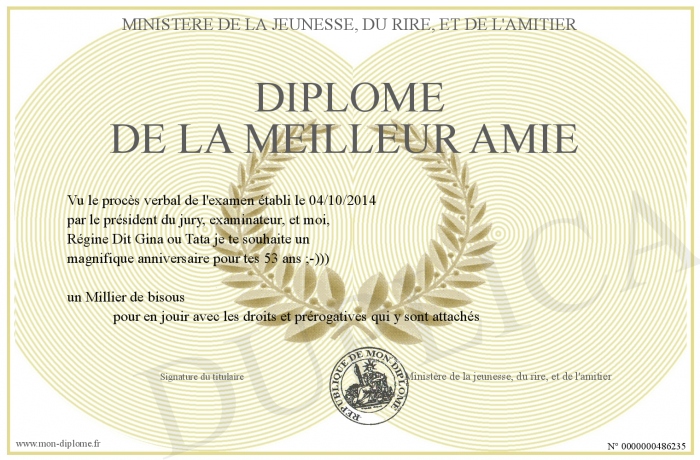 Envoyez par email votre Diplôme de la Meilleur Amie personalisé