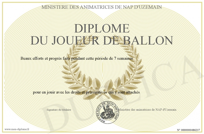Envoyez par email votre Diplôme du joueur de ballon personalisé