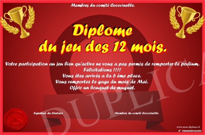 Envoyez par email votre Diplôme du jeu des 12 mois. personalisé