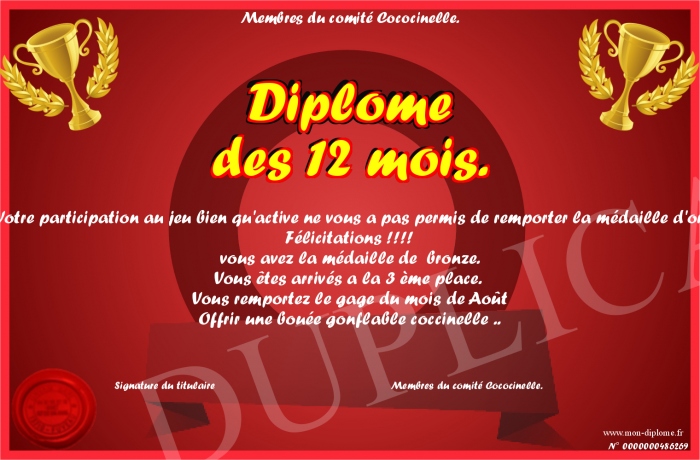 Envoyez par email votre Diplôme des 12 mois. personalisé