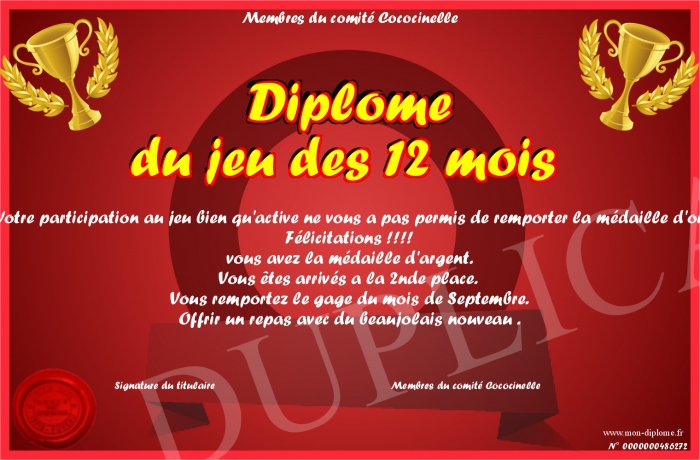 • Diplôme du jeu des 12 mois