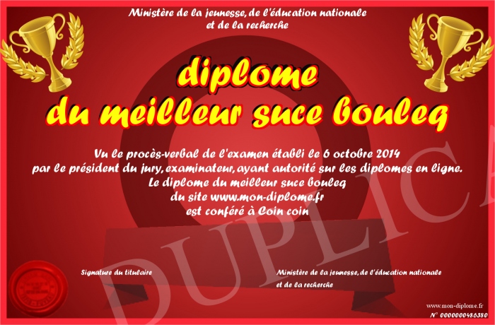 Envoyez par email votre diplome du meilleur suce bouleq personalisé