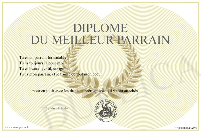 Envoyez par email votre Diplôme du meilleur parrain personalisé