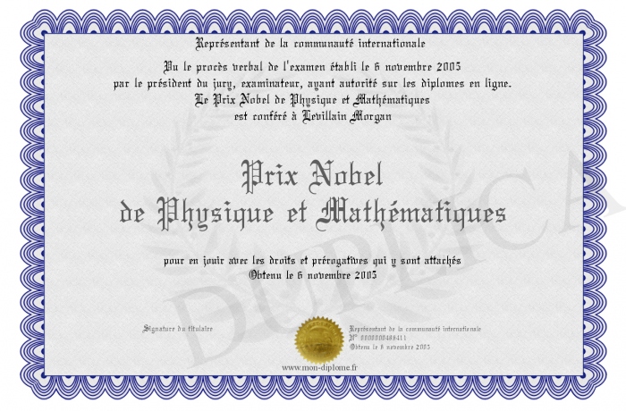 Envoyez par email votre Prix Nobel de Physique et Mathématiques personalisé