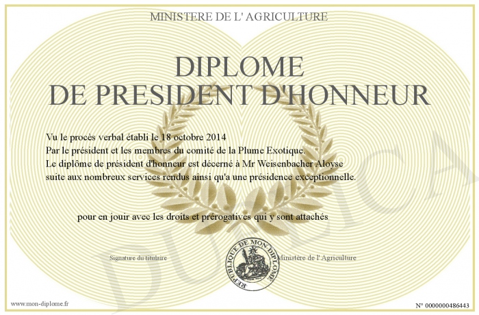 • Diplôme de Président D'honneur