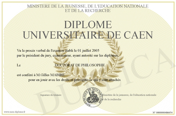 Envoyez par email votre Diplome universitaire De Caen personalisé