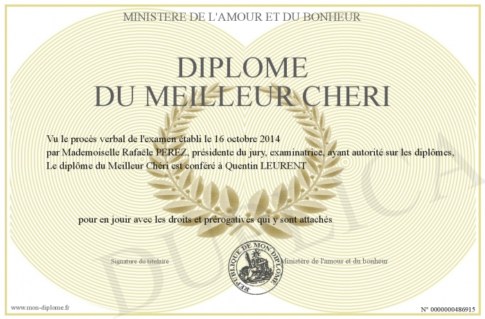 Envoyez par email votre Diplôme du meilleur chéri personalisé