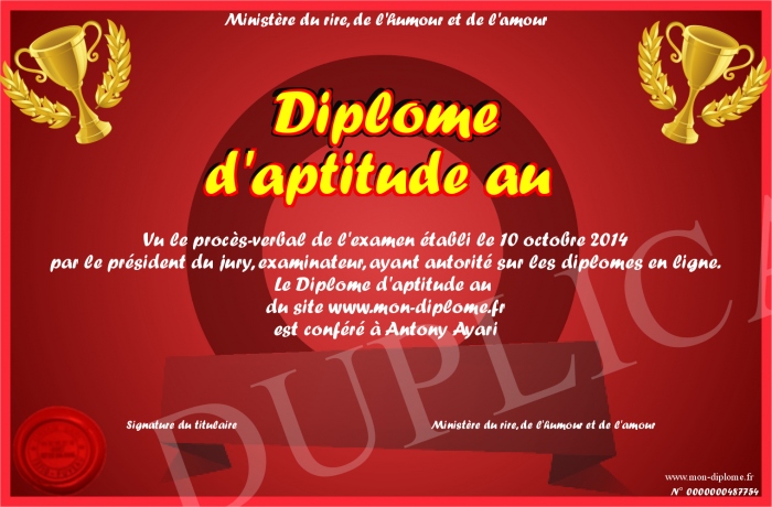 Envoyez par email votre Diplome d'aptitude au personalisé