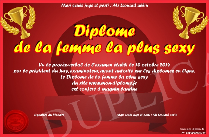 Envoyez par email votre Diplome de la femme la plus sexy personalisé