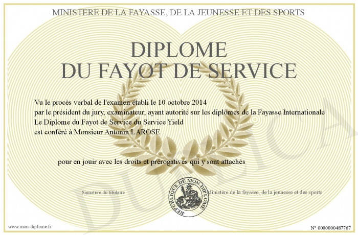 Envoyez par email votre Diplôme du Fayot de Service personalisé