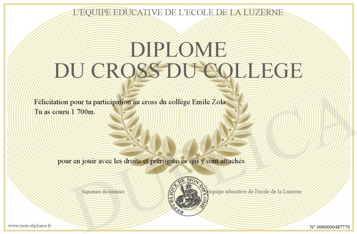 Envoyez par email votre Diplôme du cross du collège personalisé