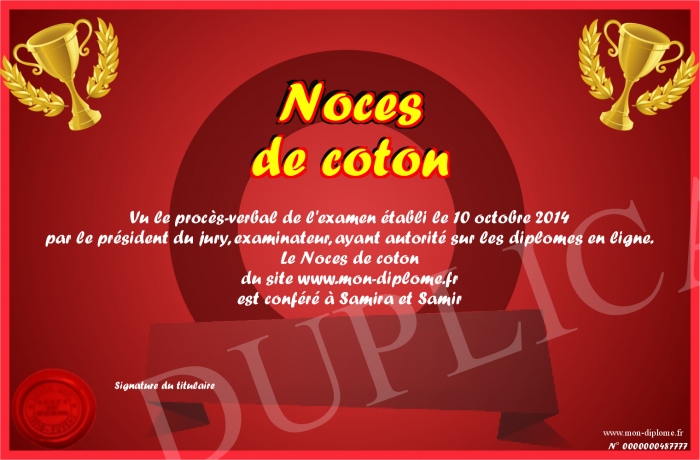 Envoyez par email votre Noces de coton personalisé
