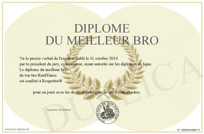 Envoyez par email votre diplome du meilleur bro personalisé
