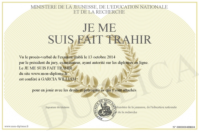 Envoyez par email votre JE ME SUIS FAIT TRAHIR personalisé