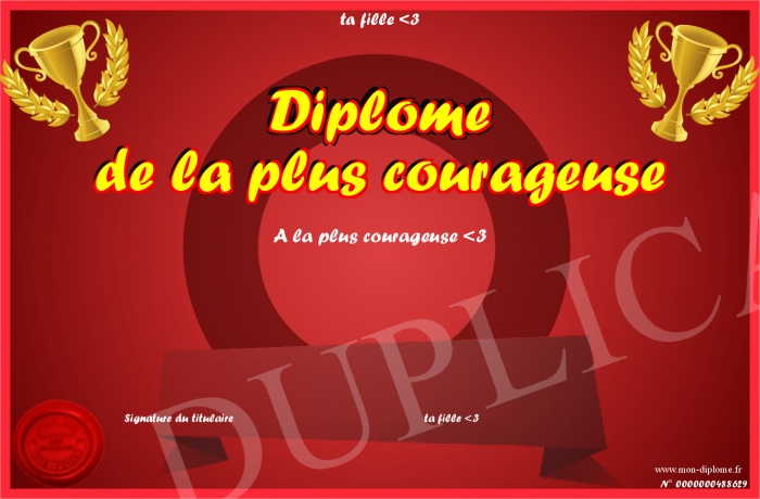 Envoyez par email votre Diplôme de la plus courageuse personalisé