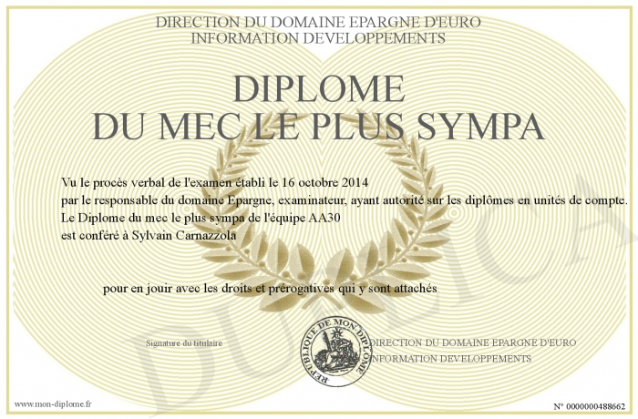 Envoyez par email votre Diplôme du mec le plus sympa personalisé