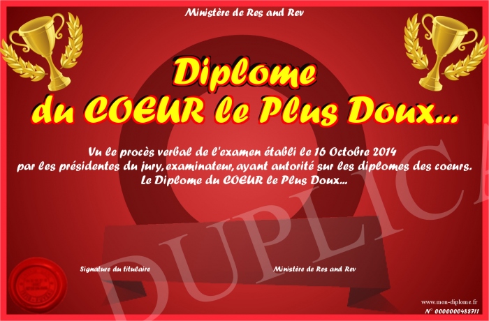 Envoyez par email votre Diplôme du COEUR le Plus Doux... personalisé