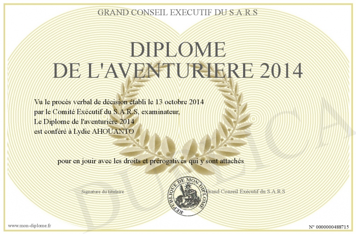 Envoyez par email votre Diplôme de l'aventurière 2014 personalisé