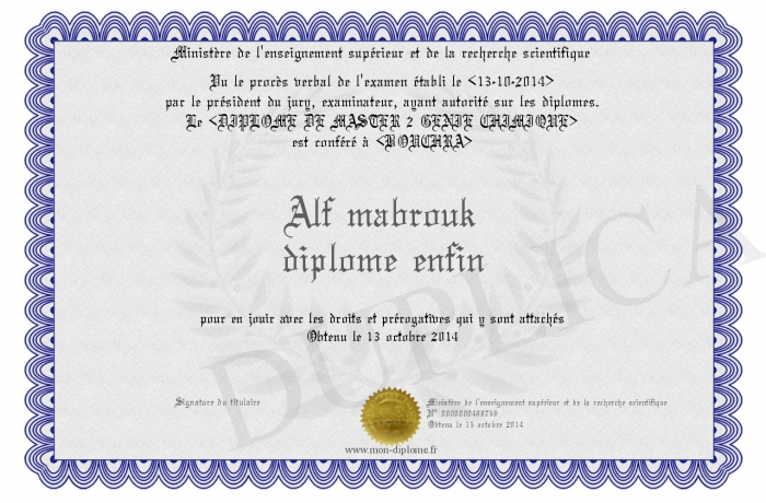 Envoyez par email votre Alf mabrouk diplome enfin personalisé