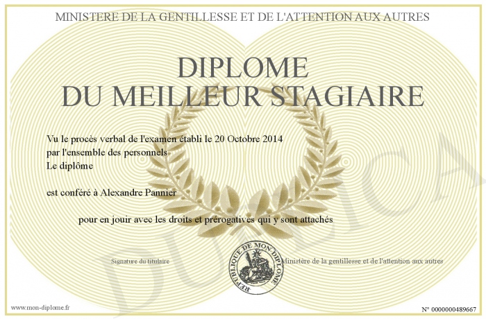 Envoyez par email votre Diplôme du meilleur stagiaire personalisé