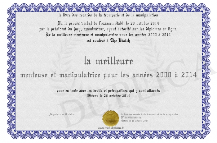 Envoyez par email votre la meilleure menteuse et manipulatrice pour les années 2000 à 2014 personalisé