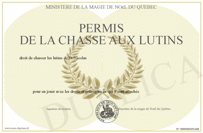Envoyez par email votre permis de la chasse aux lutins personalisé