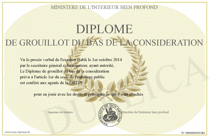Envoyez par email votre Diplôme de grouillot du bas de la considération personalisé