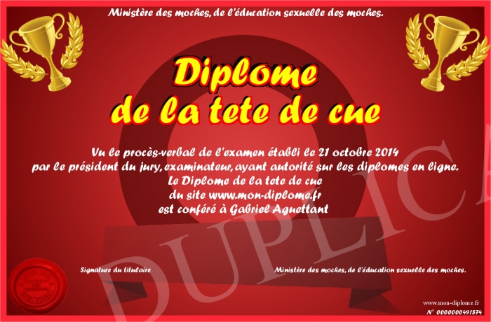 Envoyez par email votre Diplôme de la tete de cue personalisé
