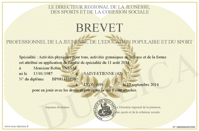 Envoyez par email votre Brevet Professionnel de la jeunesse, de l'éducation populaire et du sport personalisé