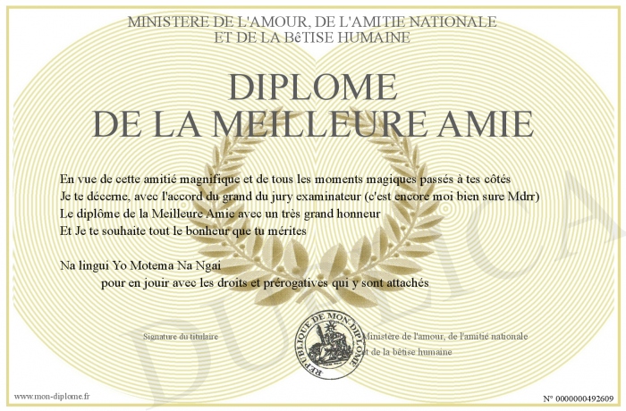 Envoyez par email votre Diplôme de La Meilleure Amie personalisé