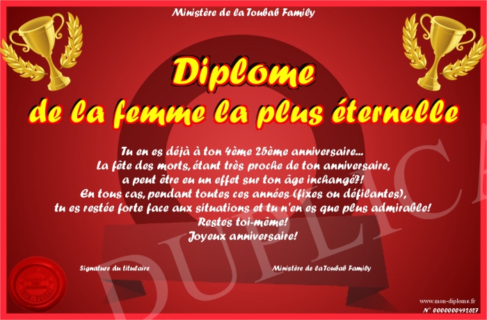 Envoyez par email votre Diplôme de la femme la plus éternelle personalisé