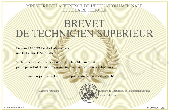Envoyez par email votre Brevet de technicien superieur personalisé