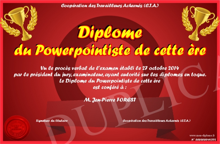 Envoyez par email votre Diplôme du Powerpointiste de cette ère personalisé