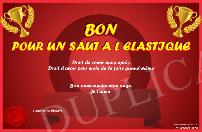Envoyez par email votre BON POUR UN SAUT A L ELASTIQUE personalisé