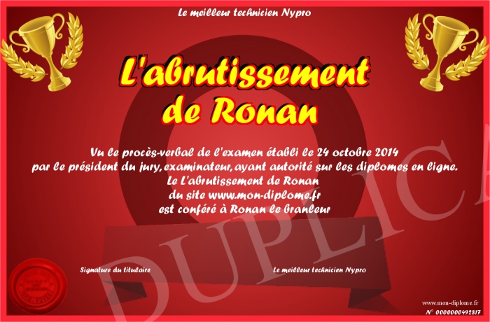 Envoyez par email votre L'abrutissement de Ronan personalisé