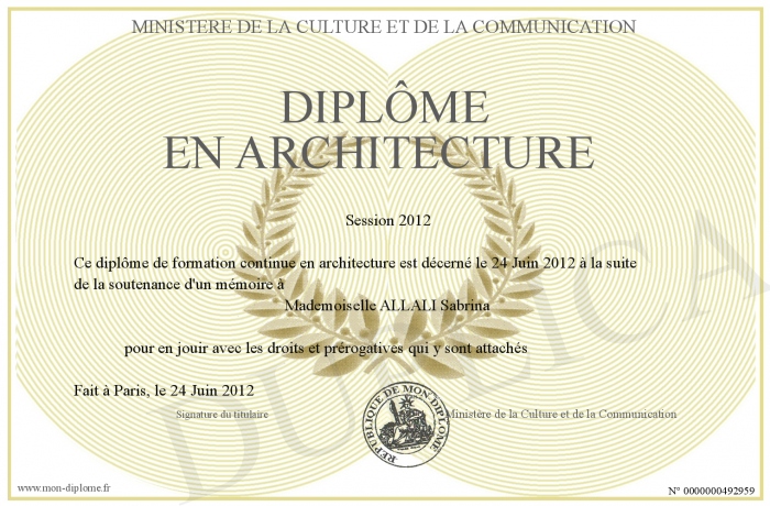 Envoyez par email votre DIPLÔME EN ARCHITECTURE personalisé