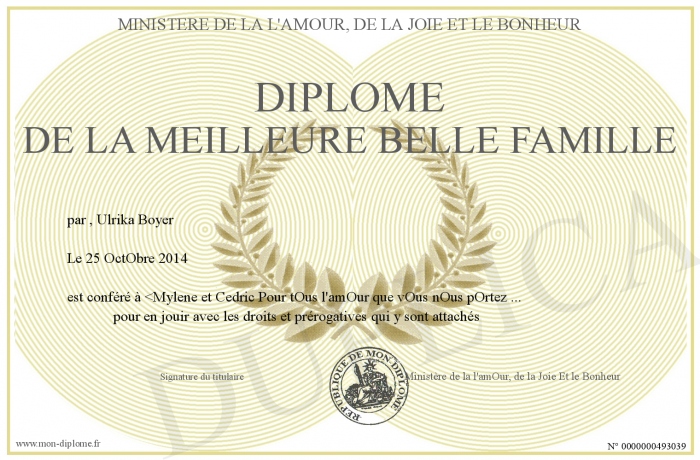 Envoyez par email votre Diplôme de la Meilleure Belle Famille personalisé