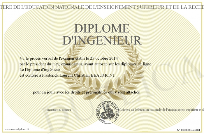 Envoyez par email votre Diplôme d'ingénieur personalisé