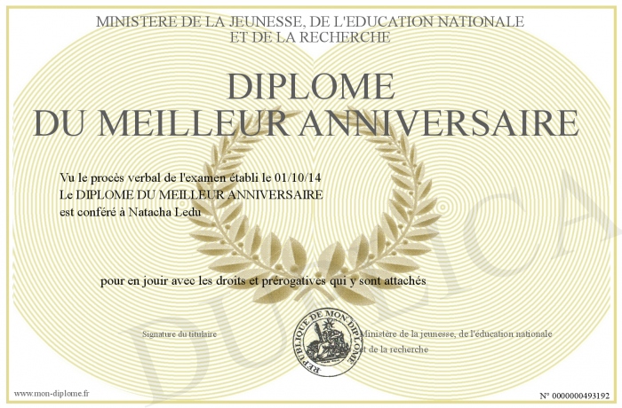 Envoyez par email votre Diplôme du meilleur anniversaire personalisé